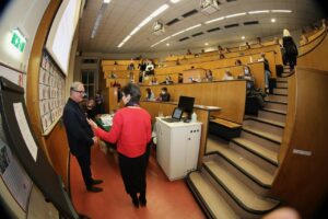 IBG Gründer, Rudolf Karazman, Facharzt für Psychiatrie und Neurologie referierte vor rund 100 interessierten Student:innen im Rahmen der 3. Einheit der Ringvorlesung Eine von Fünf an der Medizinische Universität Wien. Er hat dabei sehr anschaulich ausgeführt, wie Mobbing funktioniert. Zudem hat er das beeindruckende Projekt „Spitalspersonal gegen Ausländerfeindlichkeit (Der Mensch zuerst)“ sowie sein „Humanökologisches Modell der Arbeit“ vorgestellt. Dieses geht davon aus, dass Arbeit Gesundheit und Entwicklung des Menschen fördert, wenn die Arbeitswelt durch drei Qualitäten gekennzeichnet ist: soziale Einbeziehung, Sinnfindung durch sinnvolle Herausforderungen und regenerierbare Anstrengung. Ein derart gestalteter Arbeitsablauf ermöglicht die beste Leistung, weil dadurch Zusammenarbeit, Engagement und Arbeitsfähigkeit zusammengeführt werden können.