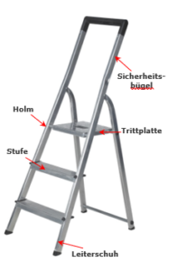 - Die Leiter muss stabil stehen und somit „komplett“ aufgestellt sein. Stehleitern dürfen nicht als Anlegeleitern verwendet werden.