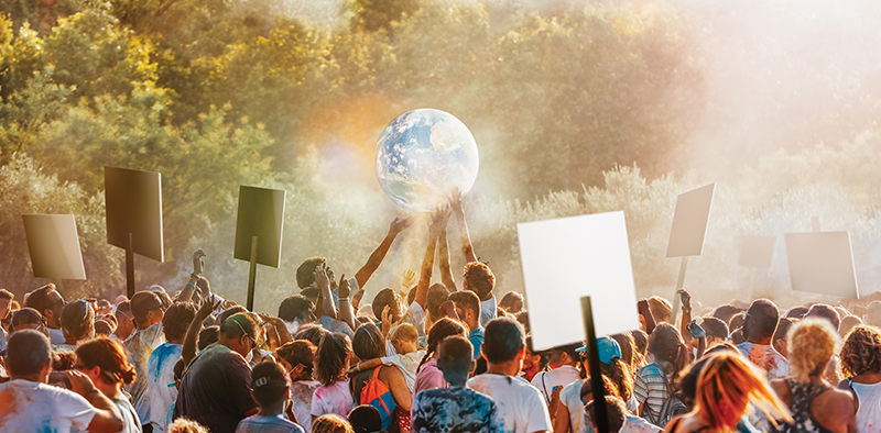 People gather to protest climate change. Demand urgent action on climate change