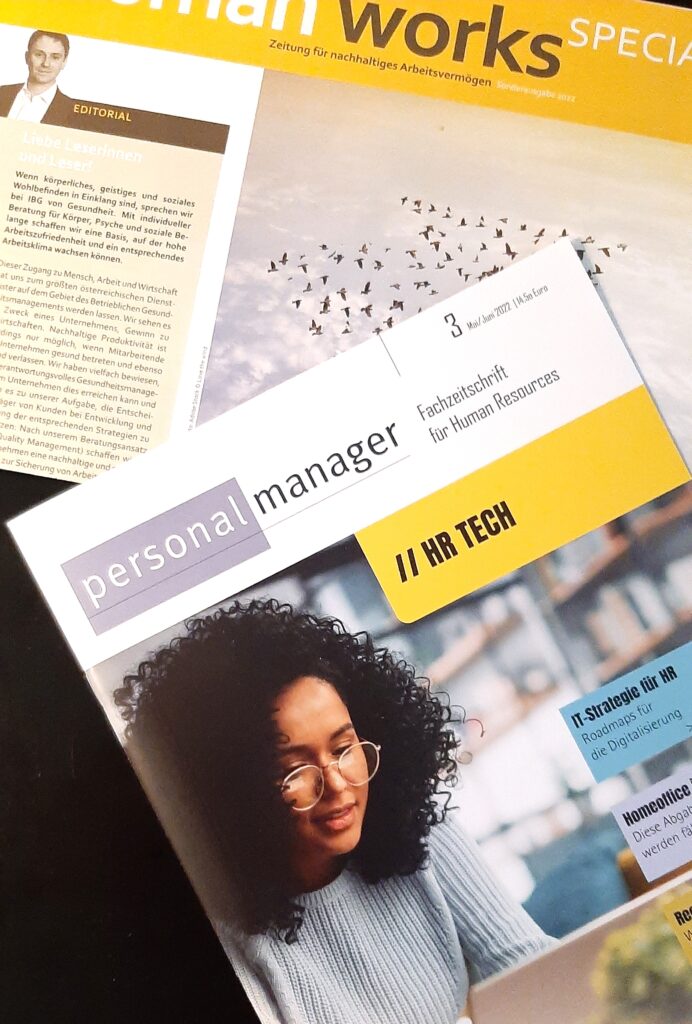 Die Sonderausgabe der Human Works – dem IBG Firmenmagazin –  zum Thema „nachhaltiges Arbeitsvermögen“ finden Sie in der druckfrischen Ausgabe 3/22 des Personal Managers beigelegt.